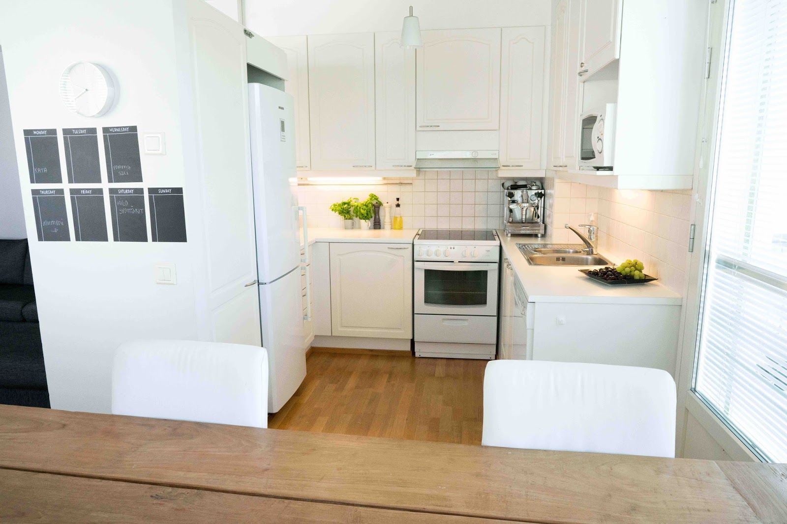 Keväällä 2012 möin oman pienen yksiöni Alppilasta ja muutin tuoreen kihlattuni kanssa samaan yksiöön Hakaniemeen. Meillä ei ollut mitään kiirettä yhteisen isomman kodin löytämisen kanssa, mutta kun kävimme tätä kotia katsomassa, ihastuimme ensi silmäyksellä. Joku asunnossa veti puoleensa ja niin tästä tuli meidän ensimmäinen kunnollinen yhteinen koti toukokuussa 2012.
